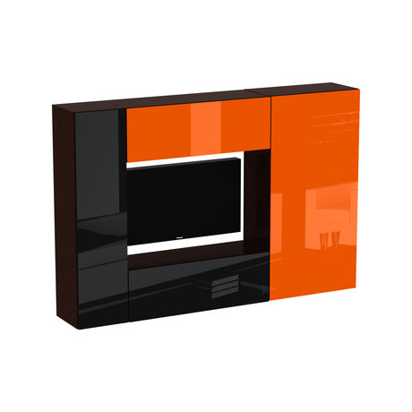 Композиция для гостиной. Все модули коллекции Сubo крепятся к стене. Двери шкафов и выдвижные ящики открываются по принципу «нажал-открыл».