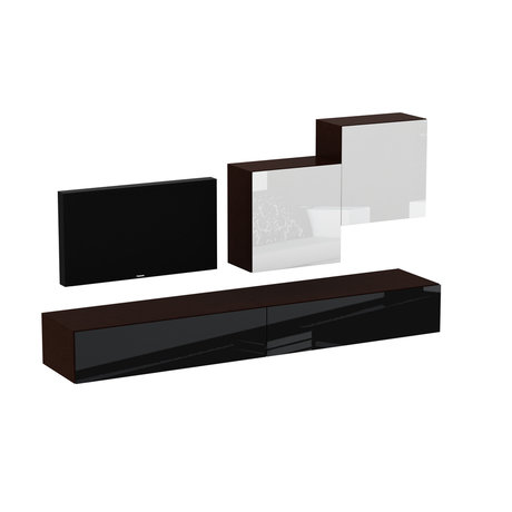 Композиция для гостиной. Все модули коллекции Сubo крепятся к стене. Двери шкафов и выдвижные ящики открываются по принципу «нажал-открыл».