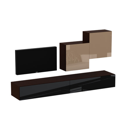 Композиция для гостиной. Все модули коллекции Сubo крепятся к стене. Двери шкафов и выдвижные ящики открываются по принципу «нажал-открыл».