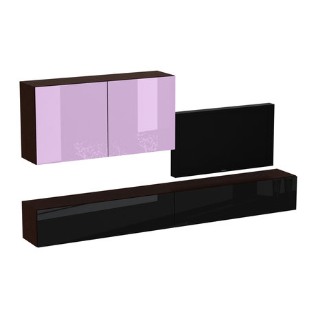 Композиция для гостиной. Все модули коллекции Сubo крепятся к стене. Двери шкафов и выдвижные ящики открываются по принципу «нажал-открыл».