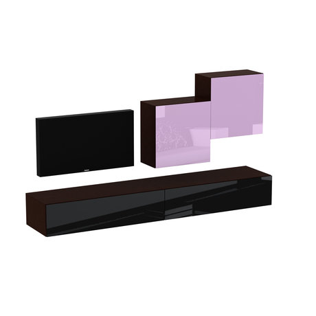 Композиция для гостиной. Все модули коллекции Сubo крепятся к стене. Двери шкафов и выдвижные ящики открываются по принципу «нажал-открыл».