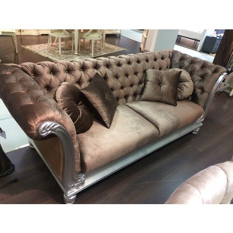 Мы предлагаем шикарный трехместный диван, который отлично впишется в классический интерьер. Для создания этого мебельного шедевра производители использовали материалы высокого качества. Обит велюром шоколадного цвета. Удобно выгнутая спинка дивана оформлена декоративной стежкой - капитоне. Ножки и основание в отделке сусальное серебро.