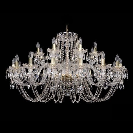 Бренд: Bohemia Ivele; Коллекция: 1402 Gold; Количество ламп: 24; Мощность лампы, W: 40; Общая мощность, W: 960; Площадь освещения, м2: 53.3; Тип цоколя: E14; Тип лампочки (основной): Накаливания; Напряжение, V: 230; Степень защиты, IP: 20; Виды материалов: Хрустальные; Материал арматуры: Металл; Цвет: Золотой; Цвет арматуры: Золото; Место установки: На потолок.