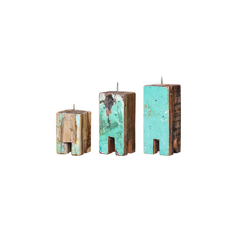 Набор из 3х подсвечников, выполненных из массива древесины старого рыбацкого судна с сохранением оригинальной многослойной окраски.
