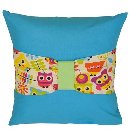 Яркие совушки украшают бант на синей подушке. Такой дизайн полюбят, как сыночки, так и дочки. Поскольку яркие и жизнерадостные краски, использованные в расцветке подушки, растопят сердце любого сорванца и заставят улыбнуться даже Царевну Несмеяну.