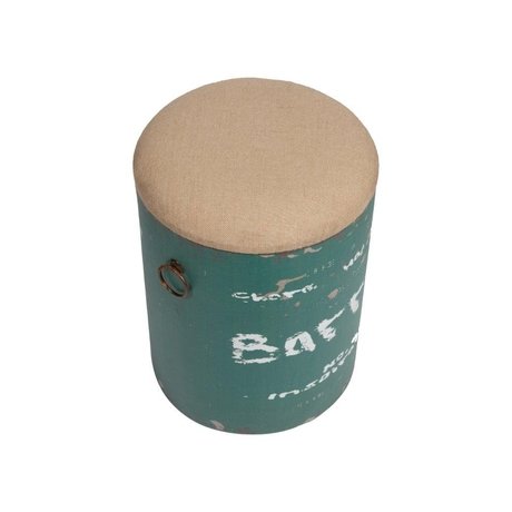 Столик-табурет Barrel Green изготовлен в виде "состаренного" металлического бочонка, окрашенного в зелёный цвет, с полустертыми надписями. Съёмная крышка табурета покрыта бежевой тканью, в виде пены. Впечатляет многофункциональность столика-табурета, а также лаконичное сочетание формы и декора.